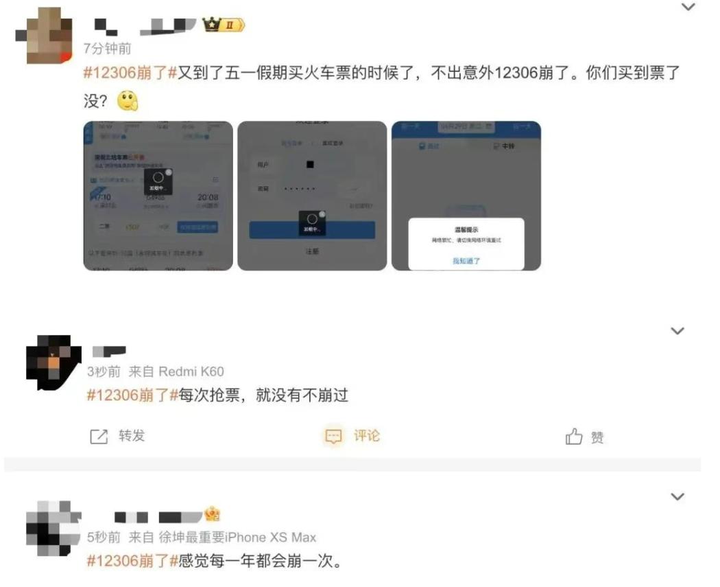 4月16日,4月16日上午,话题#12306#崩了冲上热搜。