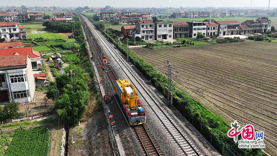 在京九铁路小池口至孔垄上行区段,现场作业人员对接触网设备展开“地毯式”排查。他们仔细地检查接触网零部件、附加悬挂、支持装置等设备,一旦发现安全隐患,立即按照标准化流程迅速进行处理。同时,作业人员还对接触网绝缘子进行冲洗,确保其绝缘性能良好。作业过程中,热浪裹挟着铁轨散发的热量,酷热难耐,但工作人员始终保持高度专注,没有丝毫懈怠。作业结束后,作业人员还对接触网几何参数进行精准测量,确保设备参数符合标准。