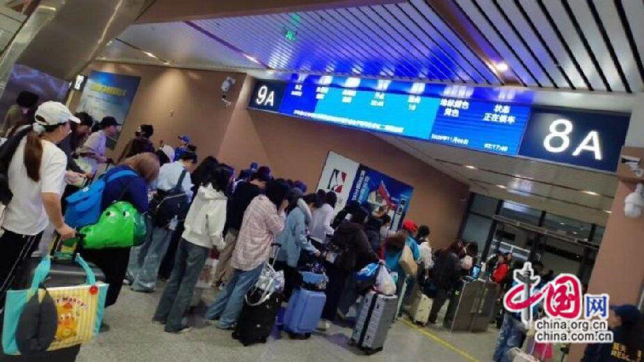 2025年11月9日,莆田站始发首开的歌迷专列旅客正在检票。陈励军 摄