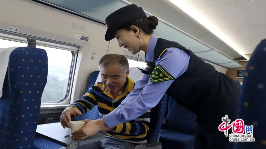 2025年11月11日,列车长姚莉娜在服务重点旅客。汪若飞 摄
