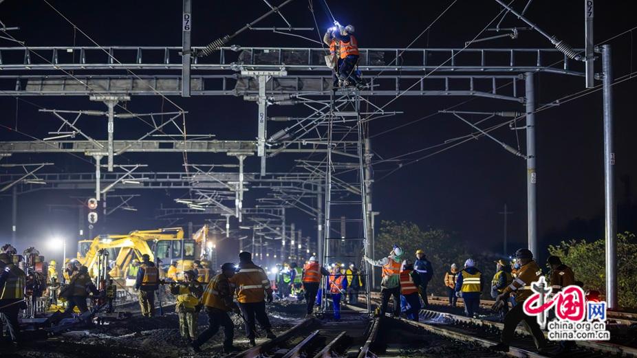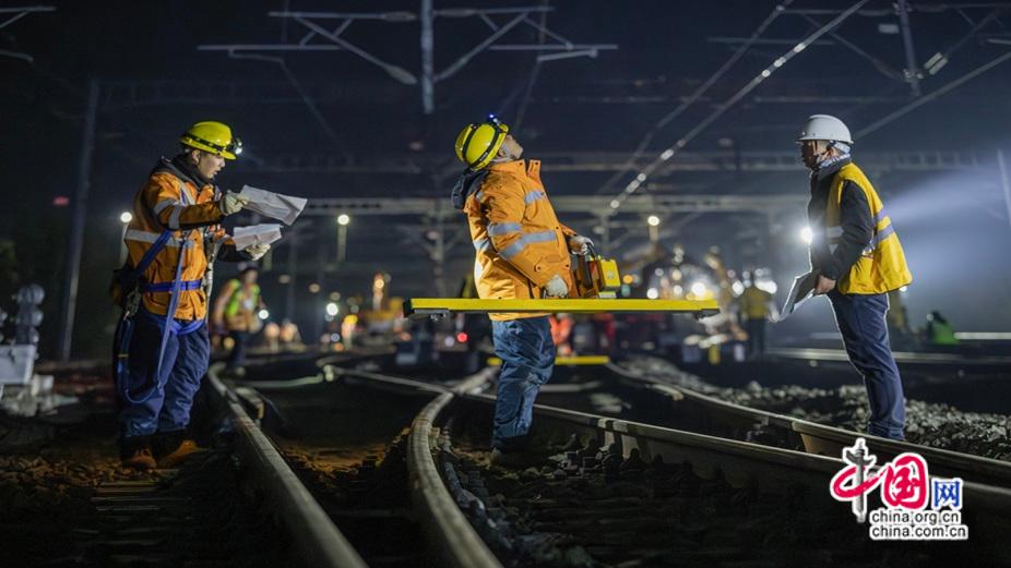 施工现场,工务、电务、建设单位等多个专业组,各司其职、协同发力,机器轰鸣声、金属碰撞声、呼唤应答声此起彼伏、不绝于耳。