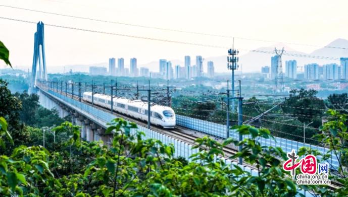 和谐号列车驶出赣深高铁赣江特大桥。陈有长 摄