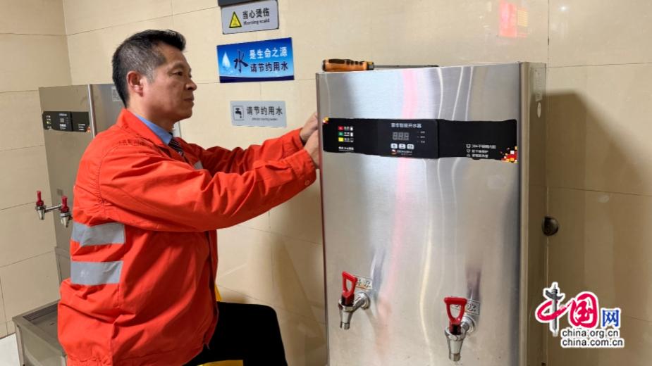 2025年12月1日,萍乡北站管理人员曹飞在维修电热水器。赵一捷 摄
