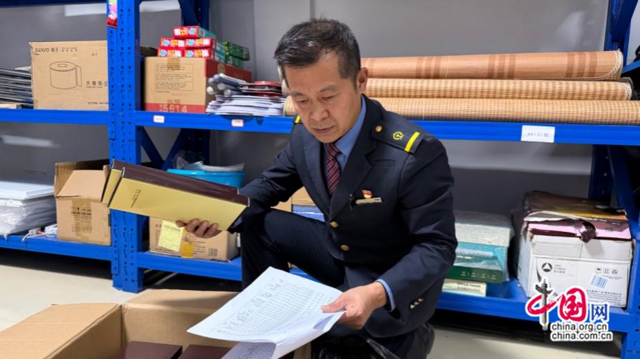 2025年12月1日,萍乡北站管理人员曹飞在清点职工冬季劳保用品。赵一捷 摄