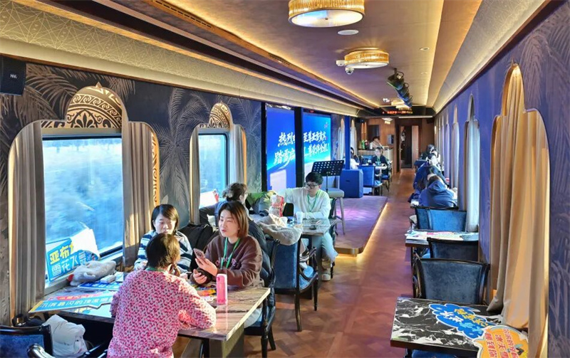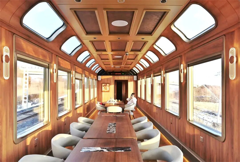 “伊春号”创新打造旅拍主题空间车,列车尾端设全景落地观景窗,配合精心布置的拍摄场景,被旅客誉为“最美流动影棚”。
