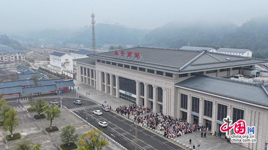 “一天同一个时段,组织两趟不同方向的研学专列,我们除了设计分时错峰进站方案外,还优化了安检进站流线,实现乘车‘一站式’无缝衔接。”永安南站站长陈兴平在现场介绍说。