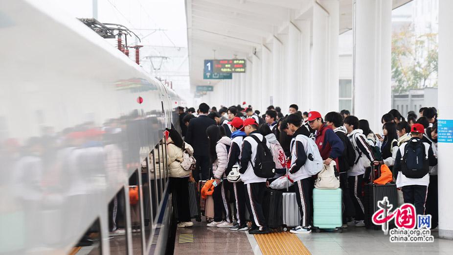 2025年12月8日,学生旅客有序上车。 庄钰翔 摄