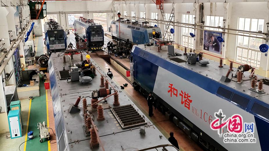 2026年1月8日,检修职工正在检修机车。 许彬 摄