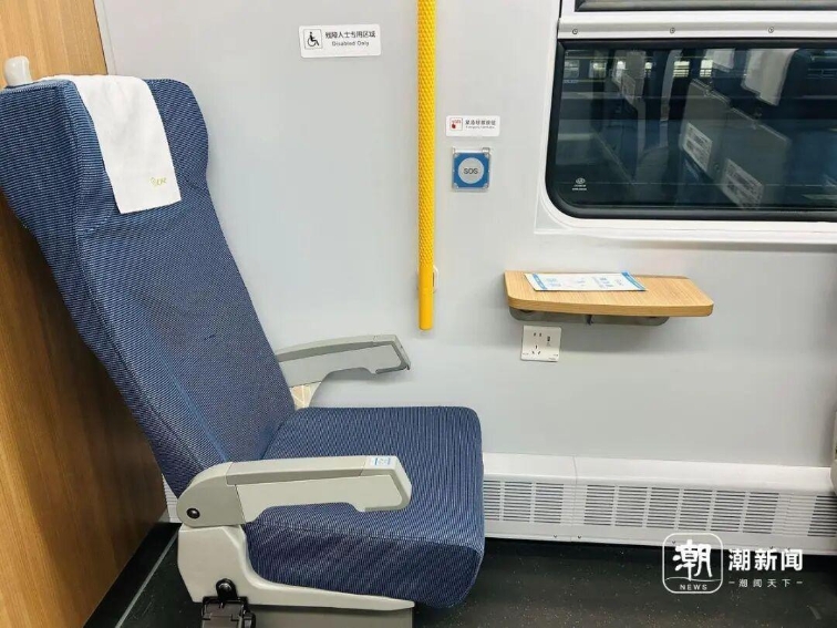 值得一提的是,在列车9号车厢,设置了两个残障人士专用座位,并配有盲文提示、sos紧急求助按钮和轮椅固定位,满足特殊重点旅客的出行需求。