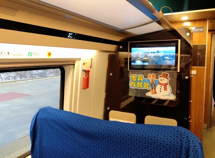 旅客检票上车后,可在列车工作人员引导下将雪具放置于指定存放区。列车运行期间,工作人员定时巡检,协助保障雪具运输安全。
