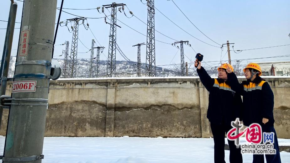 2026年1月20日,新乡供电段组织新乡变电车间月山变电所职工进行雪后巡视,并对主导电回路进行红外测温。 程鹏 摄