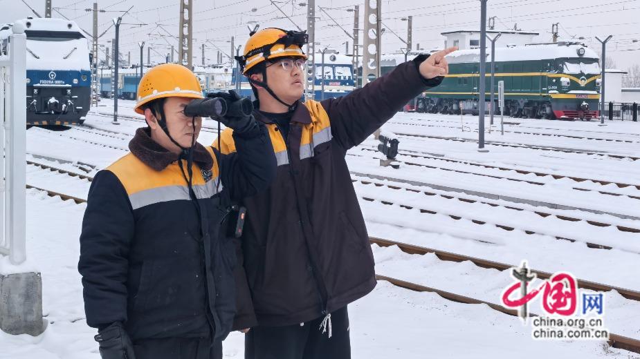 2026年1月20日,新乡供电段月山维修车间联合焦作供电车间对月山机务整备场进行接触网设备网外巡视。曹志强 摄