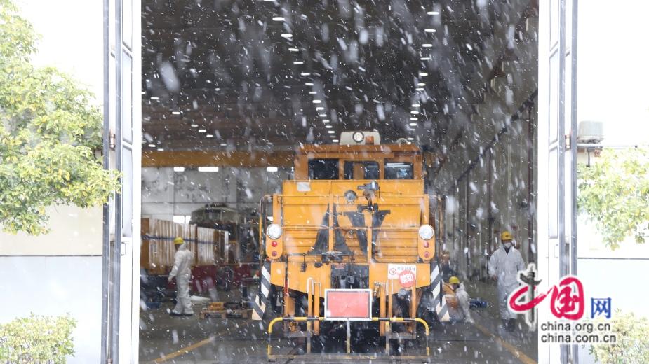 2026年1月20日上午,申城朔风凛冽,天空下起了难得一遇的大雪。此刻,中国铁路上海局集团有限公司上海大机运用检修段检修车间的检修库内,却是一幅热火朝天的繁忙景象。进入库内,能看到一名名“大机医生”在各类大型养路机械旁忙碌着,或手持焊枪专注进行部件打磨,或俯身钻入车辆底部,调整闸瓦间隙;或指挥行吊司机,将数吨重的设备稳稳吊运至指定区域……打磨声、扳手敲击声、机械运转声交织轰鸣,奏响一曲激昂的“检修交响曲”。