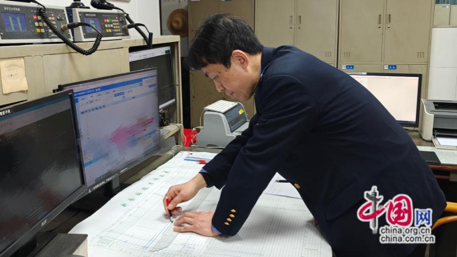 2026年1月20日,新余站车站调度员黄林在填写技术作业大表。易娇阳 摄