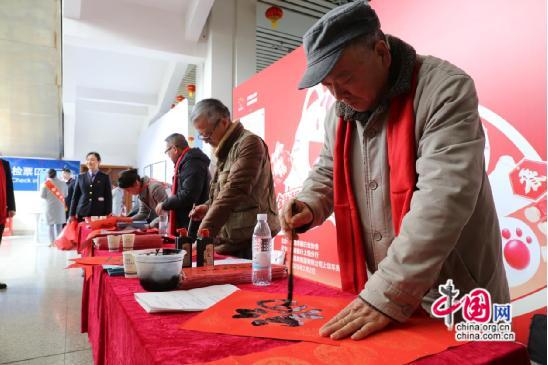 文艺演出旁,笔墨飘香的春联书写区人气鼎盛。招商银行上饶分行与上饶车务段联合邀请的书法爱好者挥毫泼墨,将“平安春运”“阖家团圆”“瑞气盈门”等美好寓意融入笔墨,红彤彤的春联与金灿灿的“福”字接连送到旅客手中。