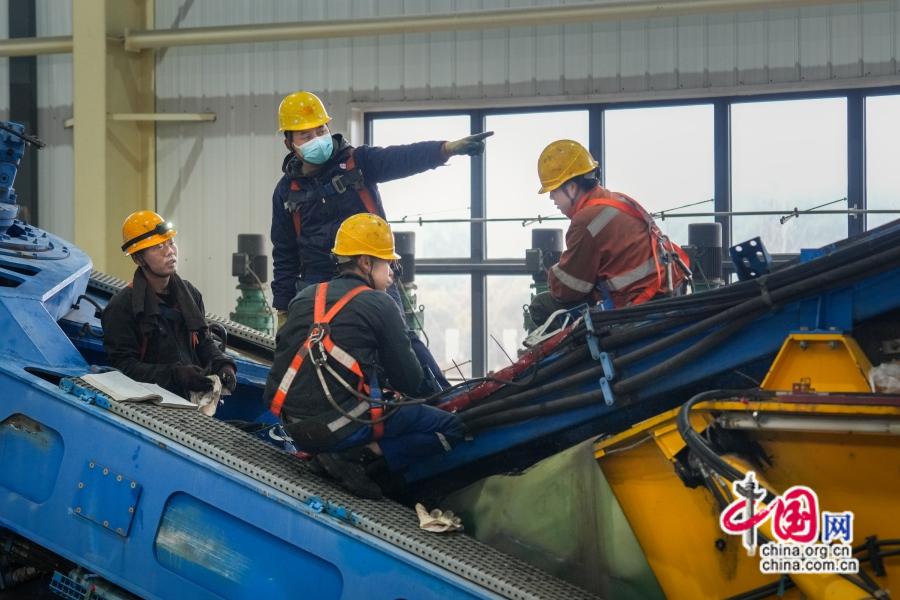 2026年1月31日,鹰潭工务机械段检修库内检修人员正在检查关键部件。杨汉敏 摄