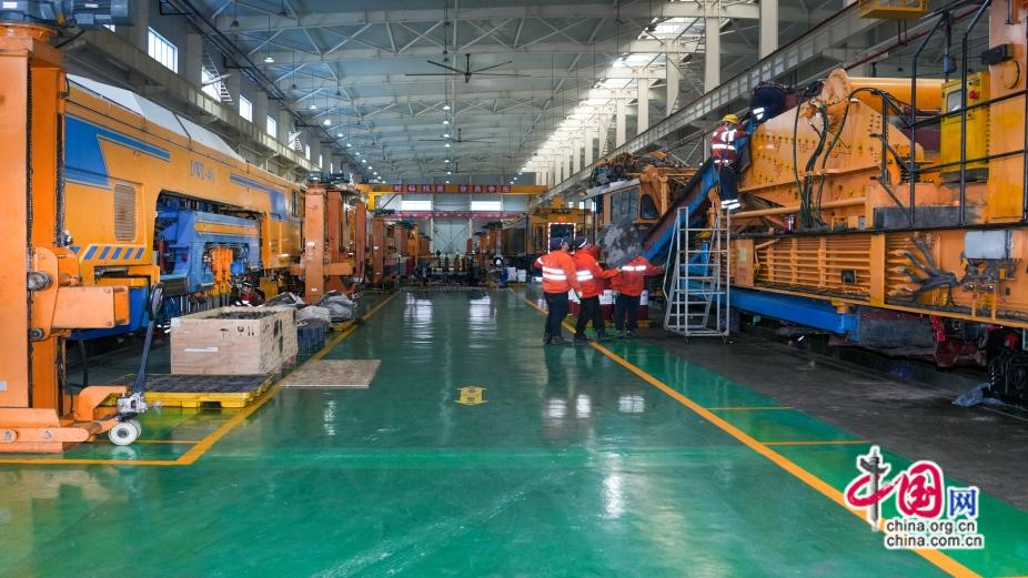 2026年1月31日,鹰潭工务机械段检修库内检修人员正在进行设备检查。杨汉敏 摄