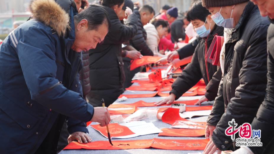 服务礼仪展示、男声独唱、小品等由淮北站“小梅花”雷锋服务站工作人员自编自导的节目轮番上演,站前广场洋溢着喜庆的春运氛围。“福至运来、情满旅途——送万福进万家”活动更是将热闹氛围推向高潮。安徽省书法家协会副主席陈辉现场挥毫泼墨,写下一幅幅寓意吉祥的春联、“福”字。车站工作人员将一份份满怀新春祝福的作品送到旅客手中。