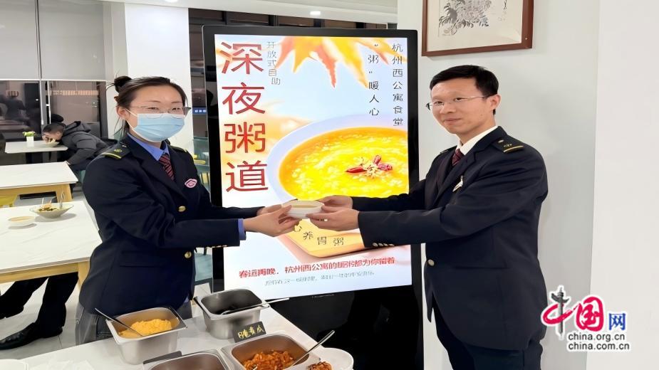 2026年2月4日,杭州西行车公寓为司乘人员提供免费养胃暖粥。黄杨 摄