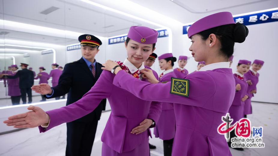 匠心筑梦,实干笃行。铁路人的每一次检修、每一趟值乘,都不是简单重复,而是用心守护安全、用情温暖旅途的生动实践。面对春运大客流,铁路部门精准投放运力,加开夜间高铁、临时旅客列车,实现运能与需求精准匹配;各大车站开设爱心服务专窗、优化静音车厢、推行宠物接送等便民举措,配备轮椅、充电设施,为老人、小孩、孕妇、病患等重点旅客提供优先进站、贴心护送的全程服务;开通列车长热线、设立重点旅客绿色通道,真正想群众之所想、解群众之所急,以暖心服务迎接每一位归家游子。从售票系统迭代升级,到站台设施提质改造;从线路养护精检细修,到车厢服务精益求精,铁路人以实干筑牢安全防线,以担当擦亮先锋底色。春运画卷里,每个人都是最美的“坚守者”。他们是节假日只能隔着站台遥望挥手的铁路夫妻;是站好最后一班岗的老将,在风霜雨雪中的步数累计超过3万的奉献者;也是彻夜在寒夜里守护着钢轨、烈日下检修设备的实干者。万千铁路人的点点星光汇聚成照亮归家路的银河,万根枕木支撑起了万家团圆的希望。“用脚步量尺”履行着自己的职责,用汗水诠释着职责,用匠心承担着守护平安的责任,让中国的钢铁长龙穿行在神州大地上,让游子们的回家之期到来。