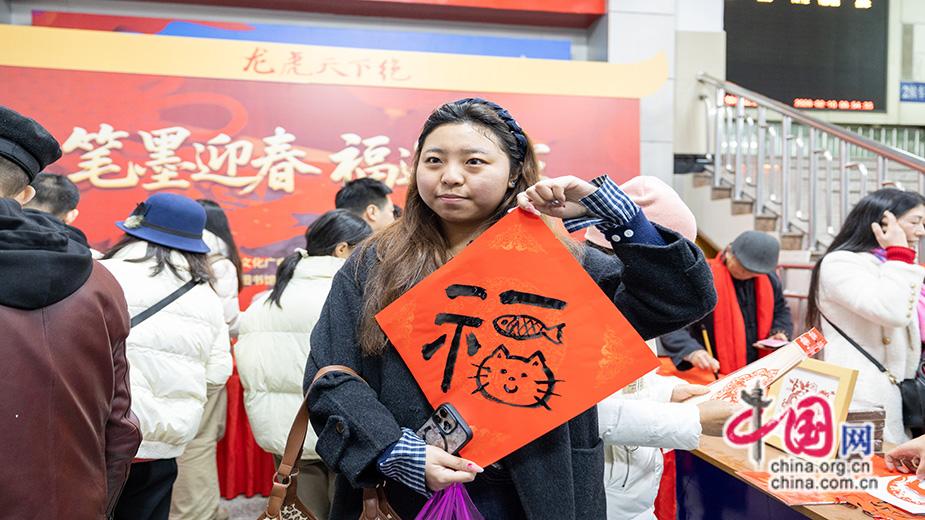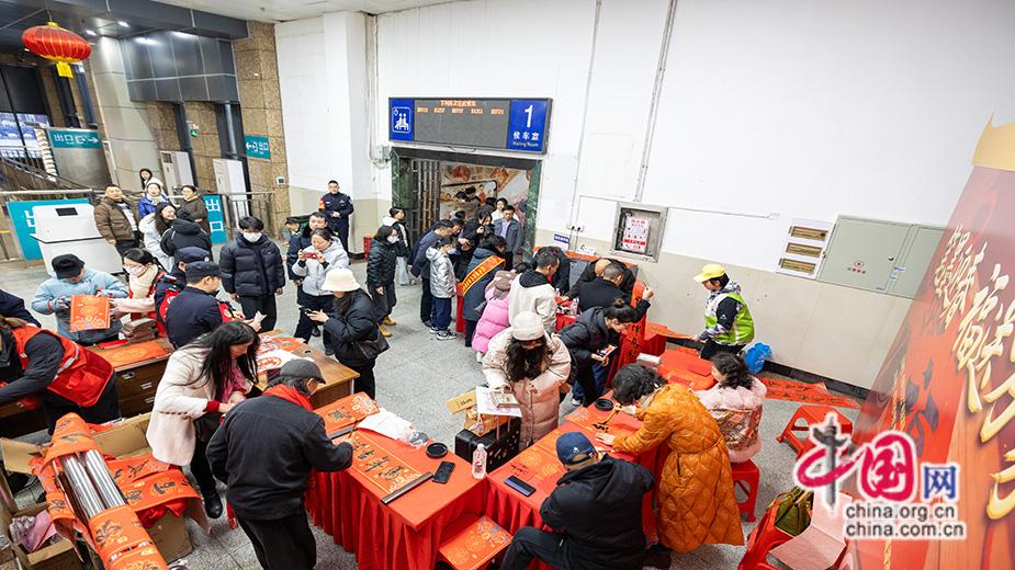 鹰潭车站:笔墨迎春送万福 温馨旅途年味浓