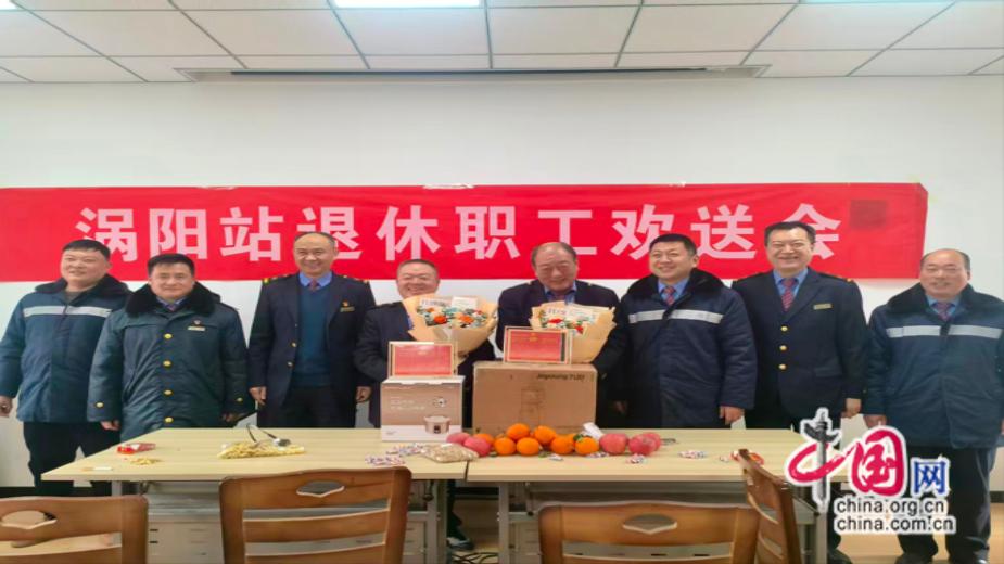 2026年1月14日,涡阳站干部职工为客运员李安涛举办退休欢送会(左四为李安涛) 李欣然 摄