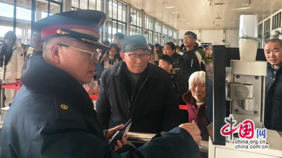 辞旧迎新贺新年,张灯结彩庆团圆。春运启幕,在外拼搏一年的游子陆续返乡,中国铁路上海局集团有限公司淮北车务段涡阳站迎来节前返乡高峰流。“请大家有序排队,右手持证,左侧闸机出站”客运员李安涛拿着扩音器卖力地引导着旅客有序出站。今年是李安涛在铁路工作的第40个年头了,今年春运也是他职业生涯里的最后一个春运。