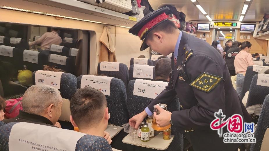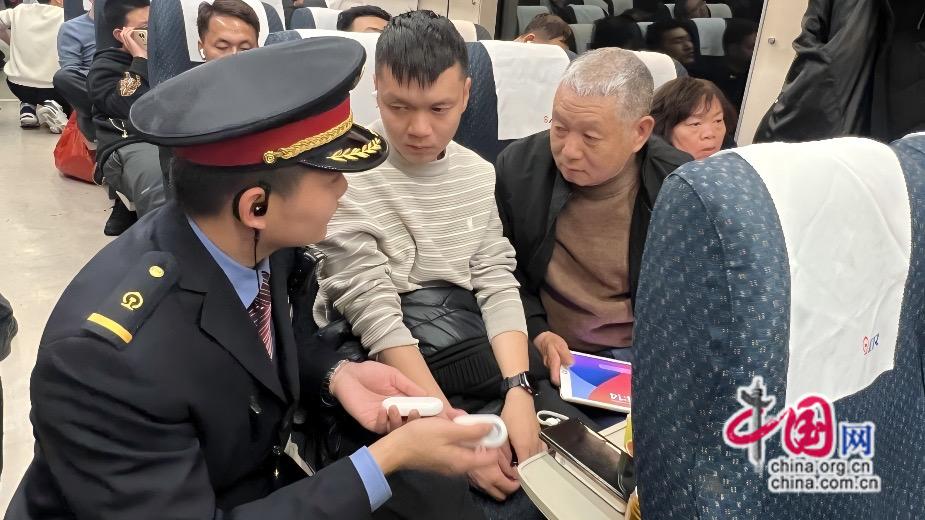 寒冬旅途,暖意相伴。车班全程为旅客免费提供暖心姜茶,温热的姜茶驱散严寒,让游子在旅途中感受到家的温暖,成为春运列车上温馨的风景线。针对老年旅客出行不便的特点,班组配备爱心呼唤铃,推出“一键呼叫”服务,陈荣彬主动帮扶老年旅客,提供搀扶、寻座、搬运行李等全方位服务,打通银发出行服务“最后一米”。