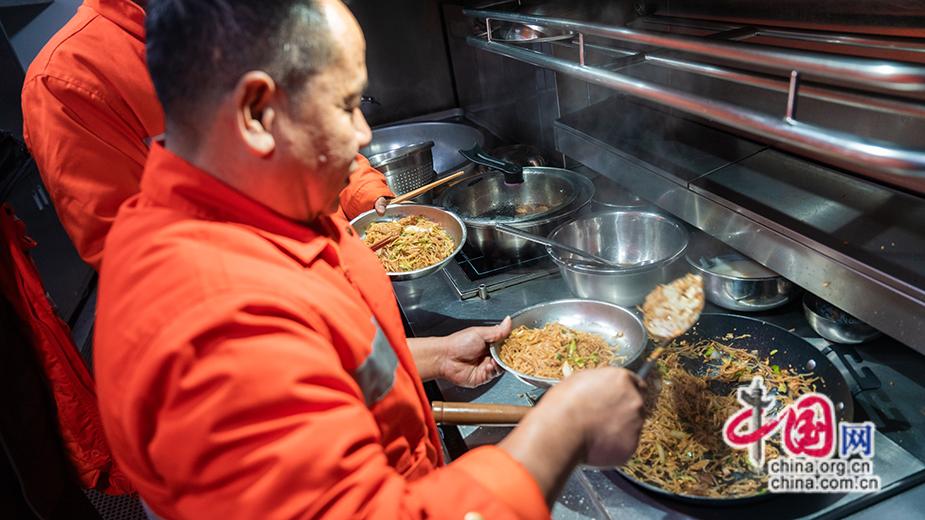 2026年2月10日凌晨,作业结束。职工正在为大家准备热气腾腾的鲜肉炒粉。徐斌 摄