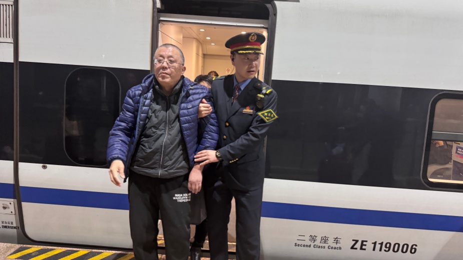 2026年春运期间,张达帮助有需要的旅客下车。丁雨宸 摄