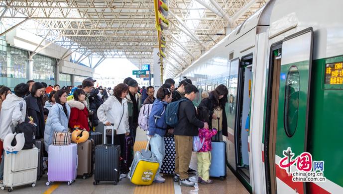 运力加码,筑牢出行“安全线”。面对春运期间探亲流、务工流、旅游流交织叠加的态势,国铁昆明局深入分析旅客出行规律,动态优化调整旅客列车开行方案,日均开行旅客列车超470列,累计增开临客列车340列,为旅客出行提供了更多选择;高峰期开行夜间动车26列,让旅客的出行之路更加顺畅便捷。春节假期里,累计发送旅客350.2万人次,同比增长10.4%,其中省际直通旅客66.3万人次,云南省内283.9万人次,为推动区域经济交流、旅游发展以及人员往来注入了强劲动力。