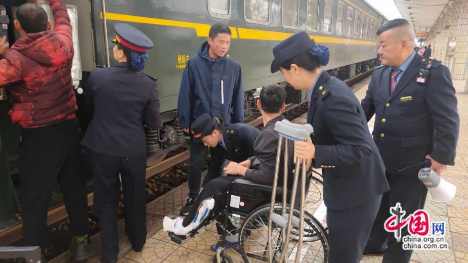 2026年3月11日,长沙客运段K380次列车工作人员服务重点旅客,用担当铺就温暖坦途。曾庆炎 摄