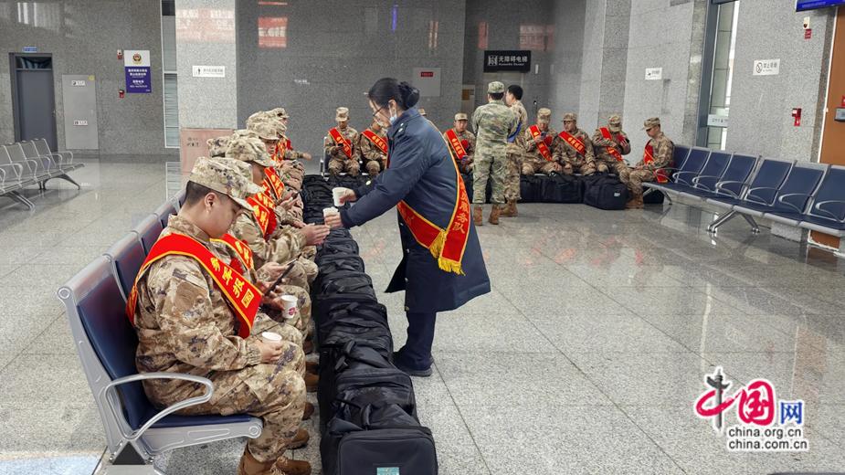 2026年3月17日酉阳站工作人员给新兵送热水。 彭蔚威 摄