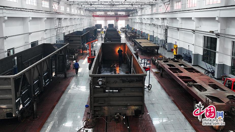 2026年3月25日,在南铁南昌南车辆段向塘修车车间,工人们正在检修货车车厢。胡国林 摄