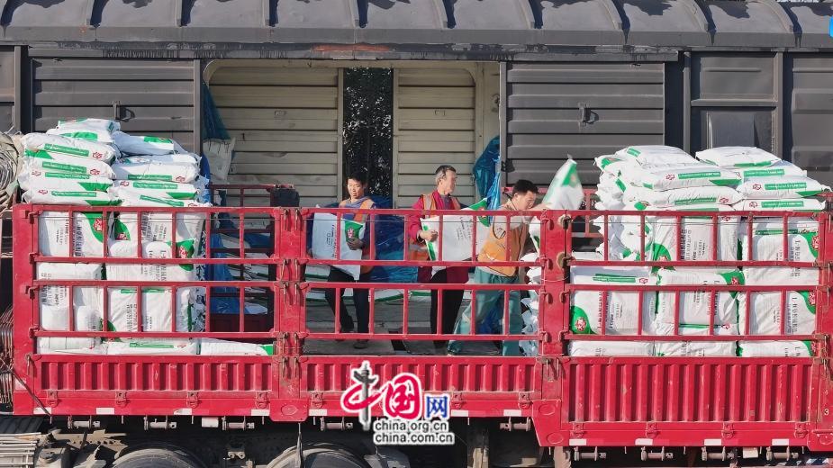 2026年4月7日,农资专列正紧锣密鼓的进行装车。曾文栋 摄