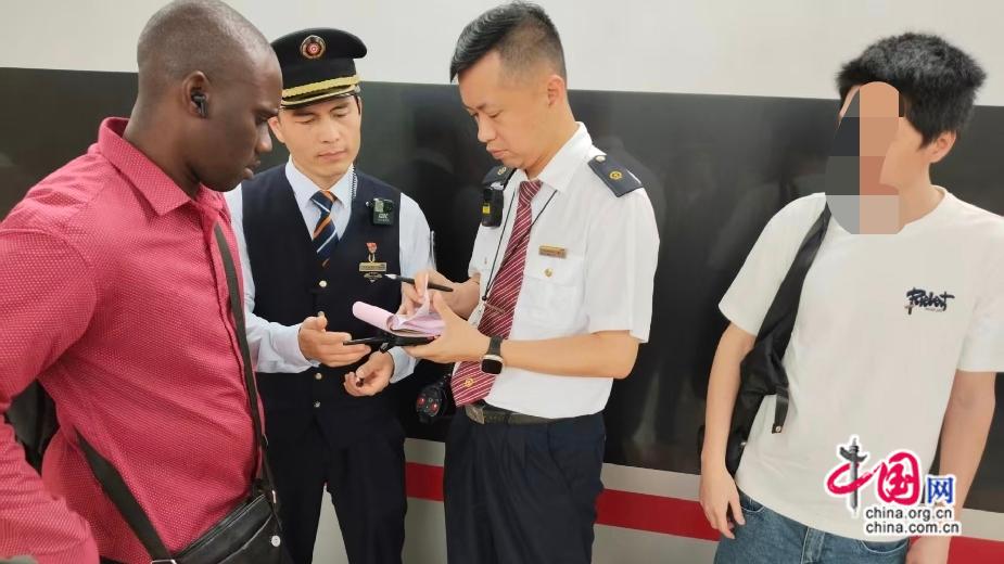 列车抵达韶关站后,邓马超按规定编制客运记录,与车站工作人员完成规范交接,妥善将外籍旅客移交车站接续转送。邓马超全程处置高效有序、服务贴心周到,让身处异乡的外籍旅客倍感安心,连连对列车工作人员的热心帮助表示感谢。